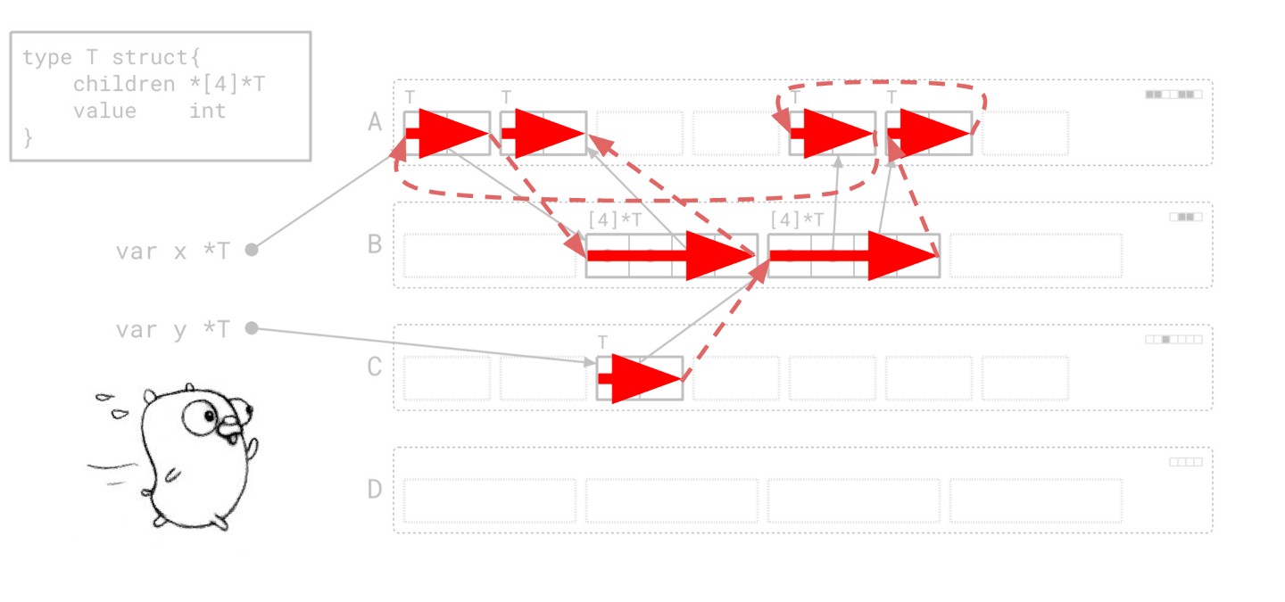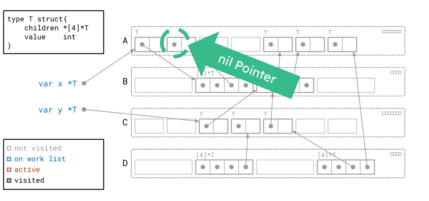 Go’s garbage collector follows a strategy broadly referred to as tracing garbage collection, which just means that the garbage collector follows, or traces, the pointers in the program to identify which objects the program is still using.
