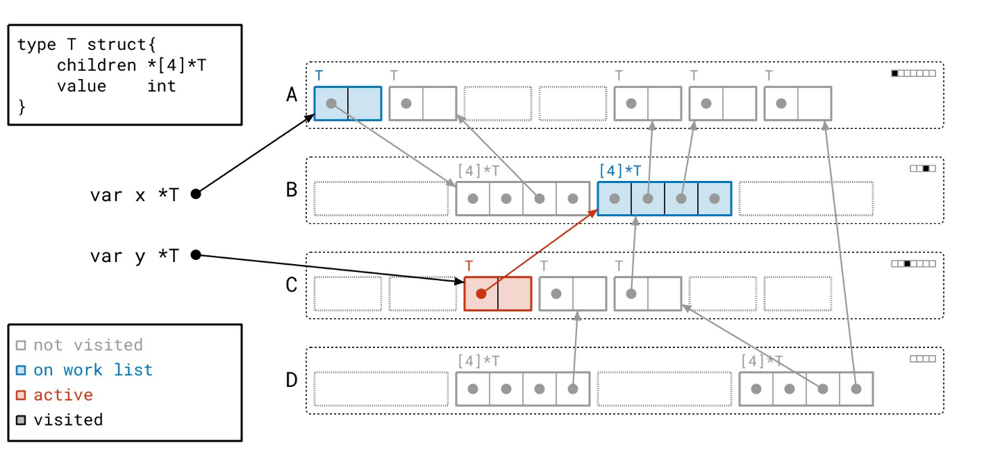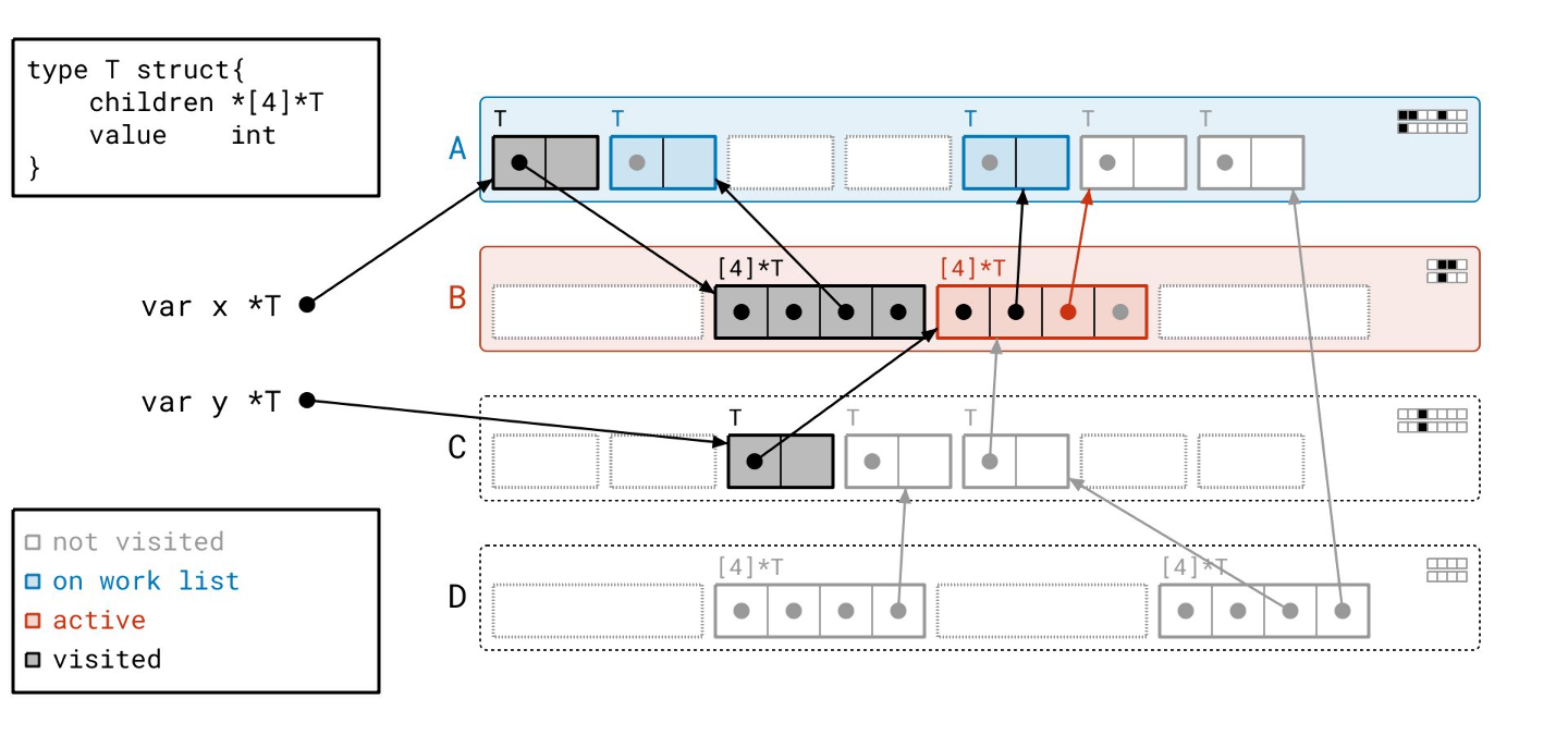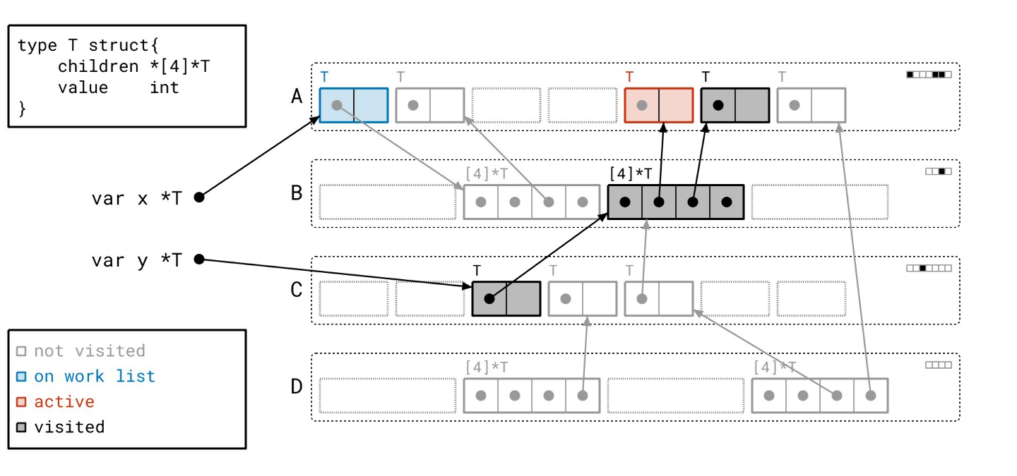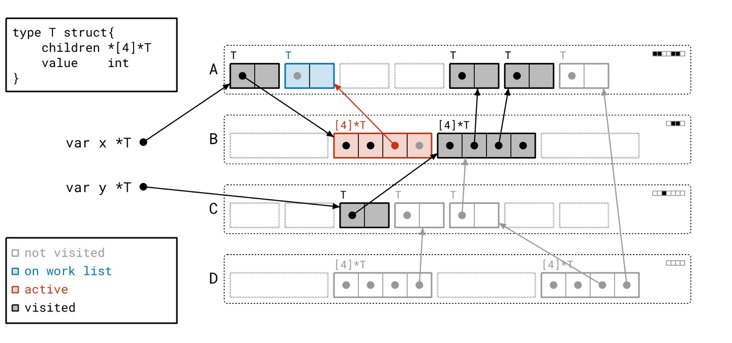 For example, this algorithm is, in practice, executed concurrently with your regular Go code. Walking a graph that’s mutating underneath you brings challenges. We also parallelize this algorithm, which is a detail that’ll come up again later.